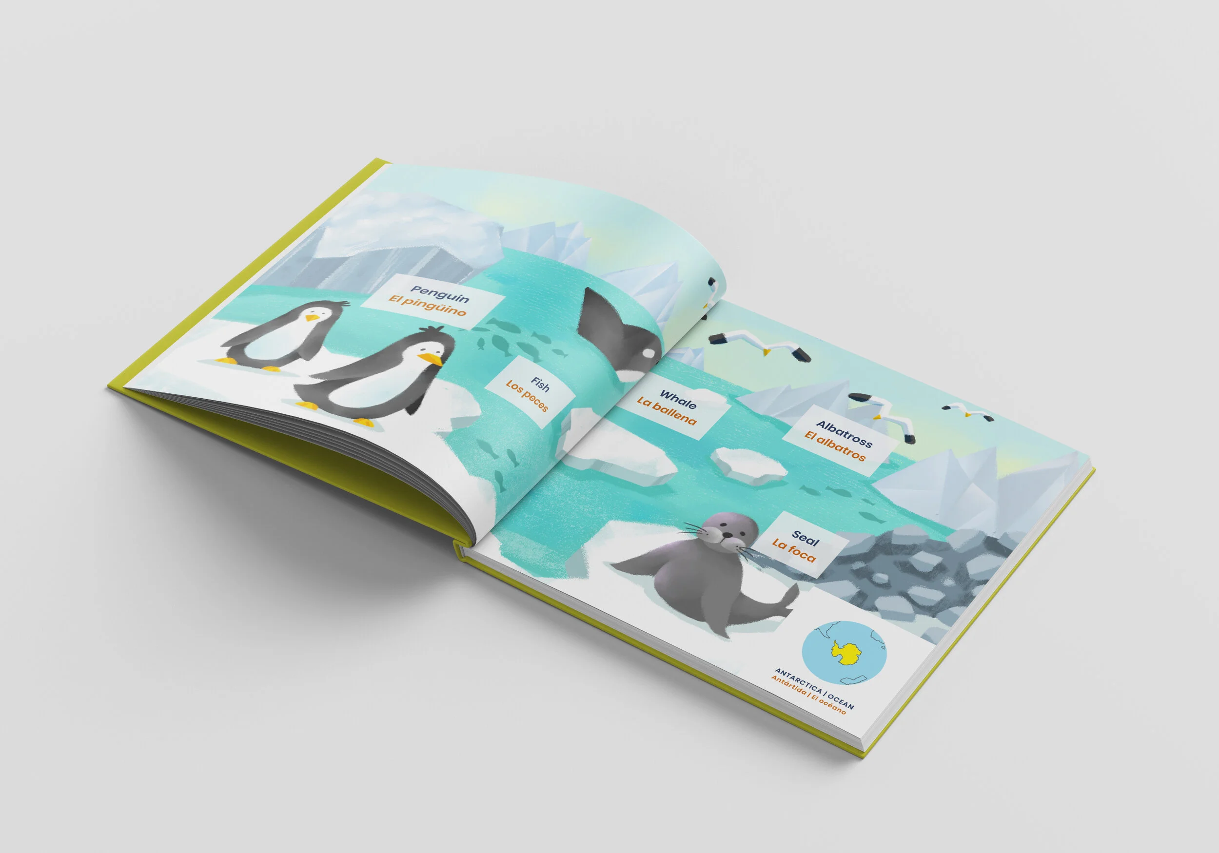 A bilingual word & phrase book for little animal lovers to discover flora and fauna across the seven continents.
